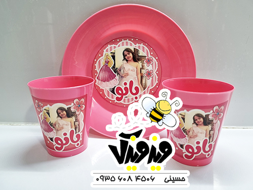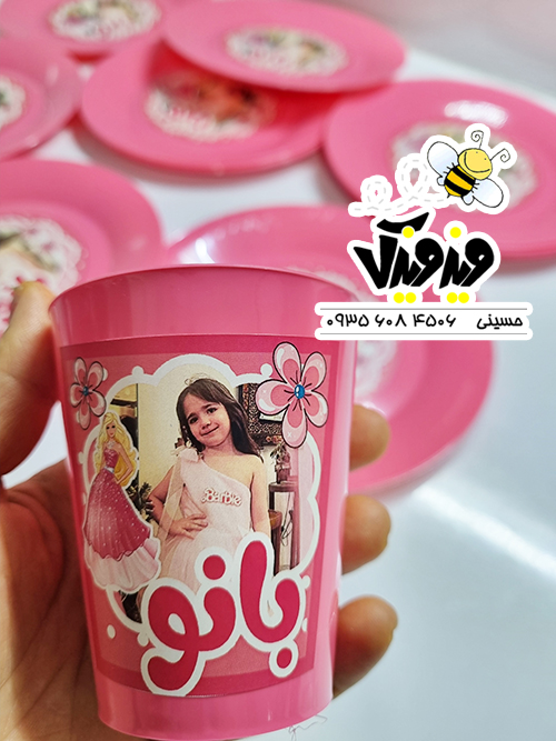 پیش دست و لیوان پلاستیکی لیبل دار تم باربی